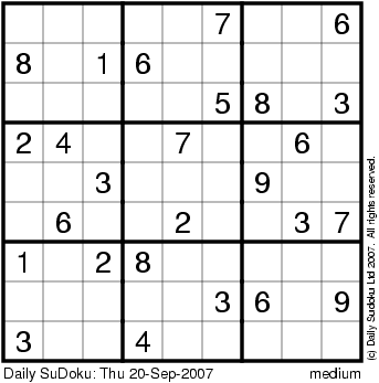 The Daily SuDoku: Thu 20-Sep-2007