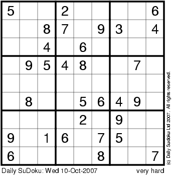 The Daily SuDoku: Wed 10-Oct-2007