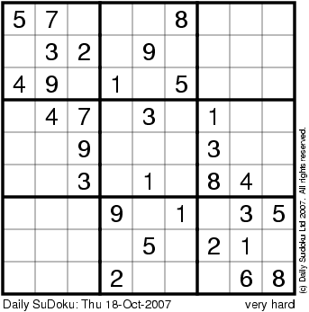 The Daily SuDoku: Thu 18-Oct-2007