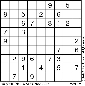 The Daily SuDoku: Wed 14-Nov-2007