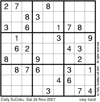 The Daily SuDoku: Sat 24-Nov-2007