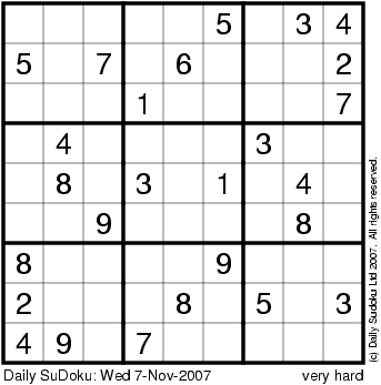 The Daily SuDoku: Wed 7-Nov-2007