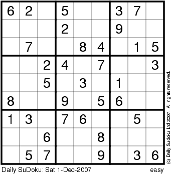 The Daily SuDoku: Sat 1-Dec-2007