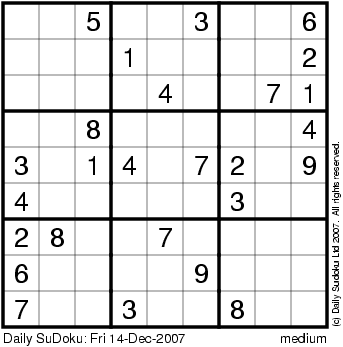 The Daily SuDoku: Fri 14-Dec-2007