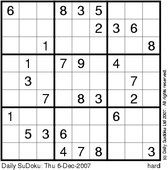 The Daily SuDoku: Thu 6-Dec-2007