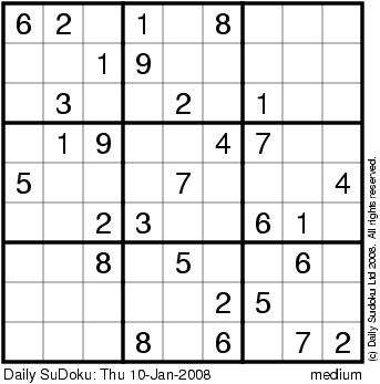 The Daily SuDoku: Thu 10-Jan-2008