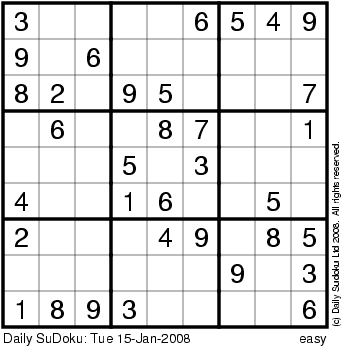 The Daily SuDoku: Tue 15-Jan-2008