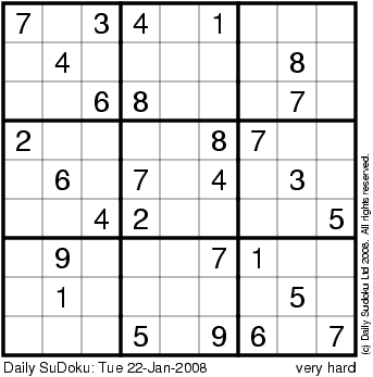 The Daily SuDoku: Tue 22-Jan-2008