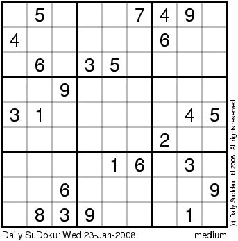 The Daily SuDoku: Wed 23-Jan-2008