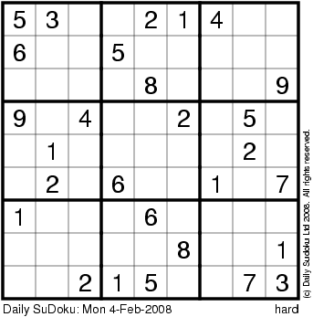The Daily SuDoku: Mon 4-Feb-2008