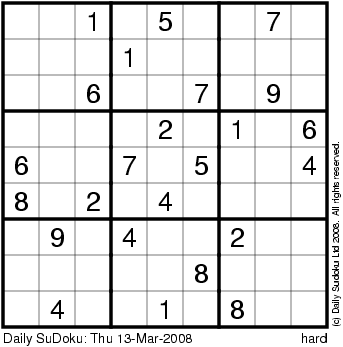 The Daily SuDoku: Thu 13-Mar-2008