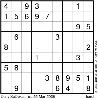 The Daily SuDoku: Tue 25-Mar-2008