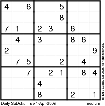 The Daily SuDoku: Tue 1-Apr-2008