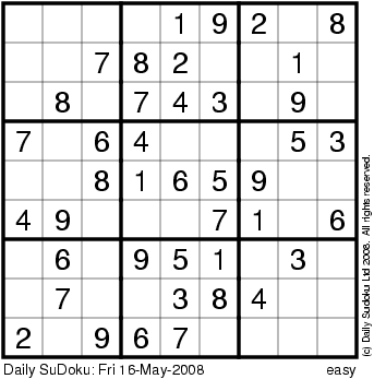 The Daily SuDoku: Fri 16-May-2008