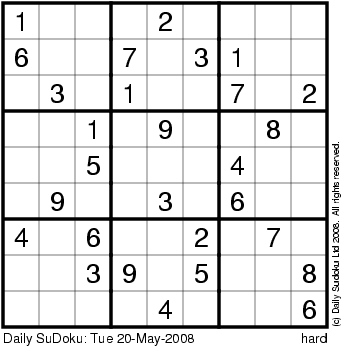 The Daily SuDoku: Tue 20-May-2008