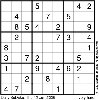 The Daily SuDoku: Thu 12-Jun-2008
