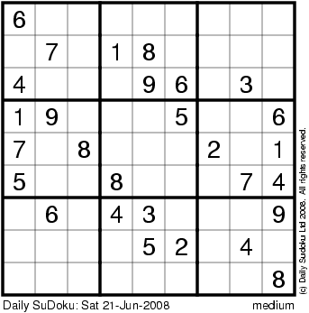 The Daily SuDoku: Sat 21-Jun-2008