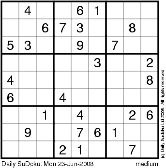 The Daily SuDoku: Mon 23-Jun-2008