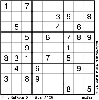 The Daily SuDoku: Sat 19-Jul-2008