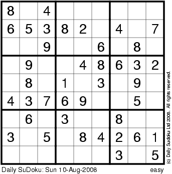 The Daily SuDoku: Sun 10-Aug-2008