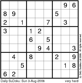 The Daily SuDoku: Sun 3-Aug-2008