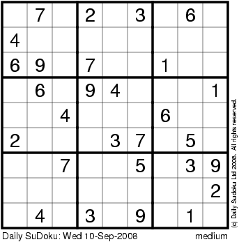 The Daily SuDoku: Wed 10-Sep-2008