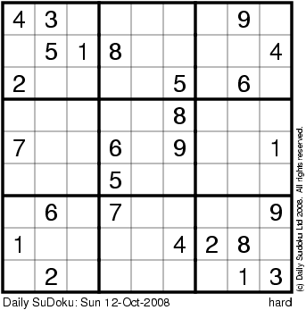 The Daily SuDoku: Sun 12-Oct-2008