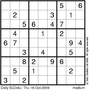 The Daily SuDoku: Thu 16-Oct-2008