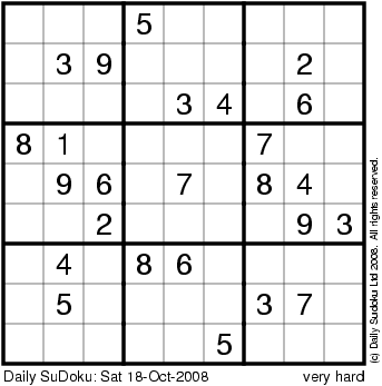 The Daily SuDoku: Sat 18-Oct-2008