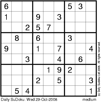 The Daily SuDoku: Wed 29-Oct-2008