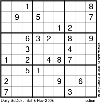 The Daily SuDoku: Sat 8-Nov-2008