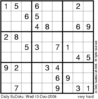 The Daily SuDoku: Wed 10-Dec-2008