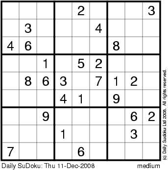 The Daily SuDoku: Thu 11-Dec-2008