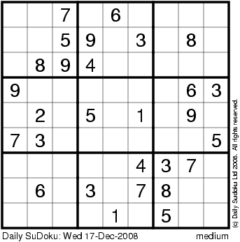 The Daily SuDoku: Wed 17-Dec-2008