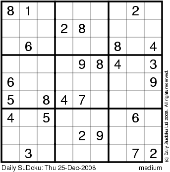 The Daily SuDoku: Thu 25-Dec-2008