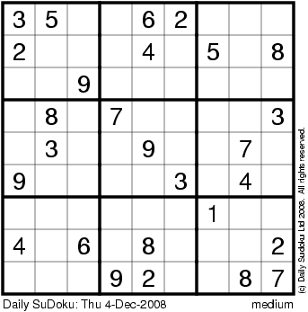 The Daily SuDoku: Thu 4-Dec-2008