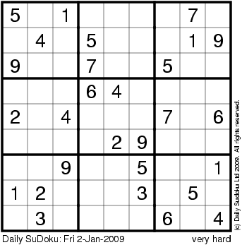The Daily SuDoku: Fri 2-Jan-2009