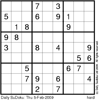The Daily SuDoku: Thu 5-Feb-2009
