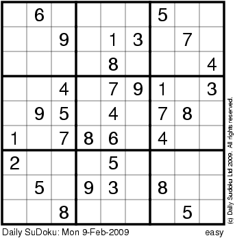 The Daily SuDoku: Mon 9-Feb-2009