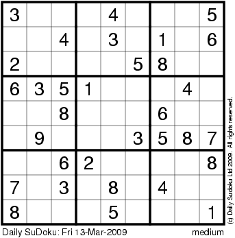 The Daily SuDoku: Fri 13-Mar-2009