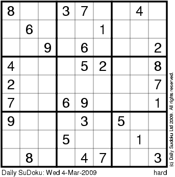 The Daily SuDoku: Wed 4-Mar-2009