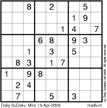 The Daily SuDoku: Mon 13-Apr-2009