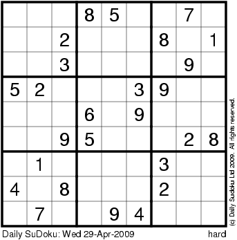 The Daily SuDoku: Wed 29-Apr-2009
