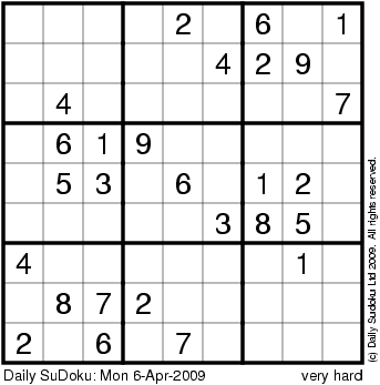 The Daily SuDoku: Mon 6-Apr-2009