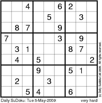 The Daily SuDoku: Tue 5-May-2009