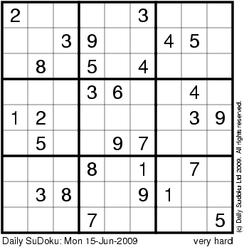 The Daily SuDoku: Mon 15-Jun-2009