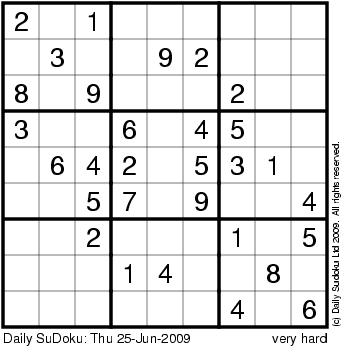 The Daily SuDoku: Thu 25-Jun-2009