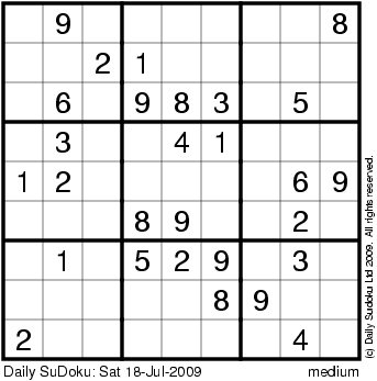 The Daily SuDoku: Sat 18-Jul-2009