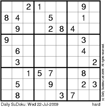The Daily SuDoku: Wed 22-Jul-2009