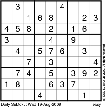 The Daily SuDoku: Wed 19-Aug-2009